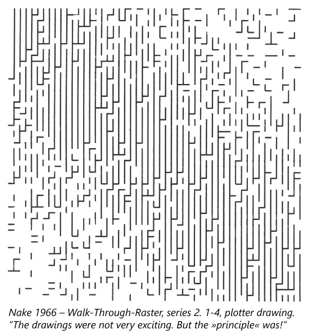 Frieder Nake is recognized as a pioneer of (digital) computer art. He produced his first works in 1963. Frieder Nake has been a full professor of computer science at the University of Bremen, Germany, since 1972. Since 2005, he has also been teaching at the University of the Arts, Bremen. Nake was represented at all important international exhibitions on computer art. His teaching and research activities are in computer graphics, digital media, computer art, design of interactive systems, computational semiotics, and general theory of computing.